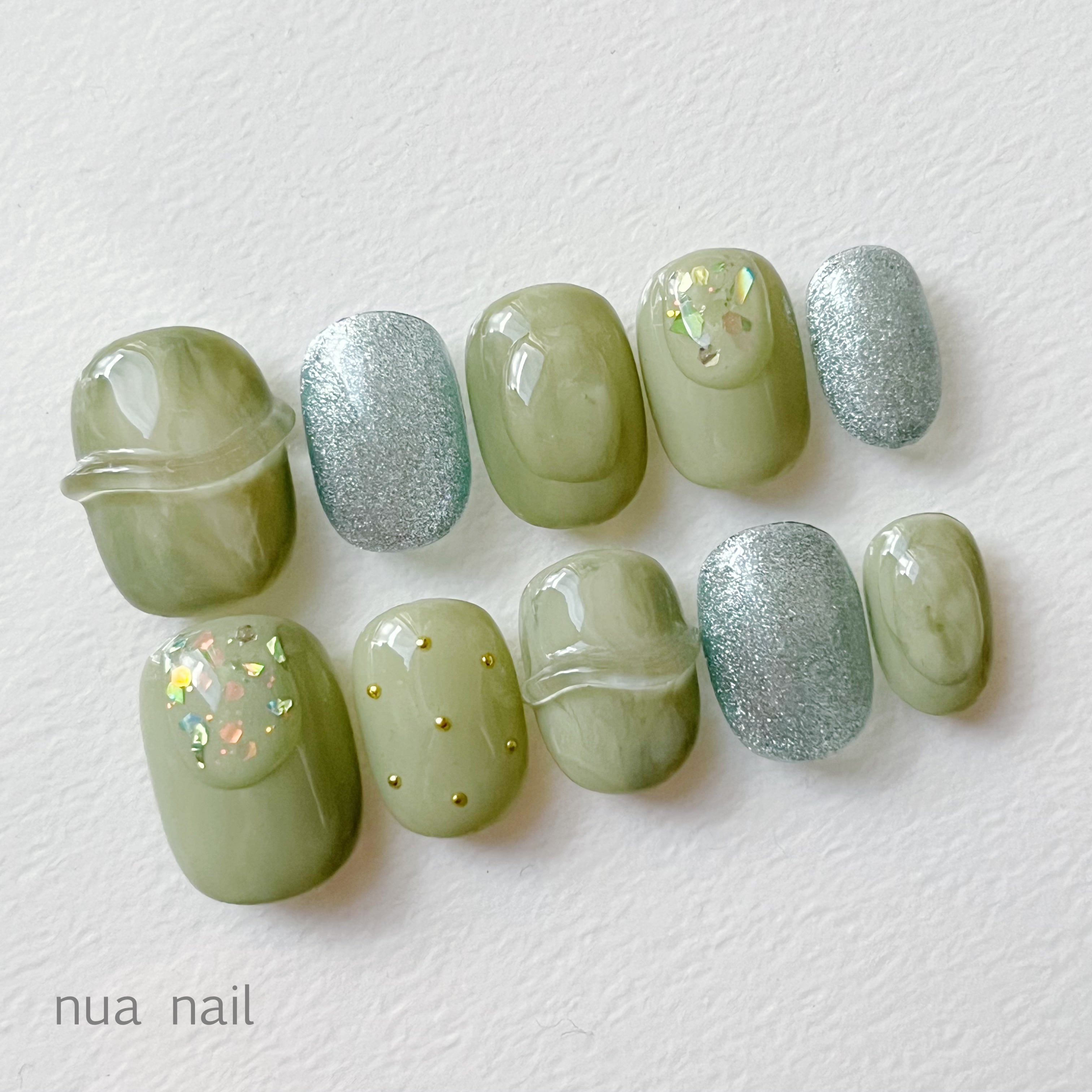なみなみグリーンニュアンス ネイルチップ